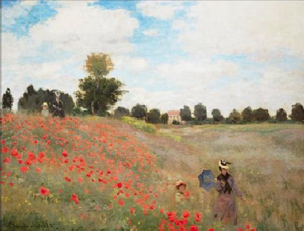 Camille Doncieux is important in art history, if nothing more than she appeared in so many of Monet's great works. She was still a teenager when Monet net her (around 1865). She came from a humble family. She was working as a model and presumably Monet was attracted by this attractive young woman ith dark hair and expressive eyes. Monet mentions her eyes. Monet was 7 years older and still an unrecognized, struggling artist. She quickly became his mistress and model. It was common for men of Monet’s social class to have mistresses. It was uncommon to marry them. Their first son Jean was born (1867). Monet defying class conventions, married Camille just before the outbreak of the Franco-Prussian War (June 28, 1870). She went with him to London and Zaandam. After the War they moved to Argenteuil (December 1871). They lived little removed from poverty. It was at Argenteuil that Monet painted many bimportant works. His wife Camille and son Jean Monetat figured in some of them. Camille became ill (1876). About this time Monet began seeing a mistress. Their second son, Michel, was born (1878). The pregnacy weakened her at a time her health was failing. Even as she got sick, Camille sat for him regularly. There were portraits, but often shecwas aistant female figure in a rural landscape. Many of these works are among Monet's greatest vpaintings and masterpieces of Western art. Monet moved to the village of Vétheuil (1878). Camille died of tuberculosis at the age of 32 (1879). We have not been able to find much information about the boys. We see Jean in several paintings, but there are very few paintings with Michel. Monet met a woman while Camille was still alive. When her husband died, they married. She had a little girl who liked painting and Monet liked her. She eventually married Monet's son Jean. Jean died at age 47 before his father (1914). Jean' wife then looked after her father-in-law when Monet's second wife died.