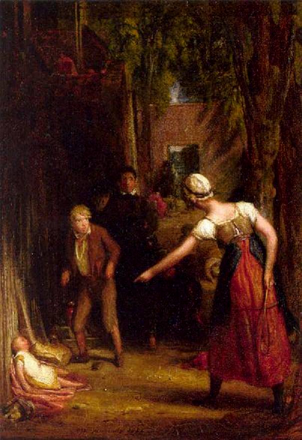 His deeply held Catholic beliefs meant that divorce was not an option. They separated and blamed each other (1820s). He charged that she was engaged in 'bad conduct", but refused to provide details. Shc blamed him, accusing him of cruelty, pederastic activities and adultery. Here we see 'The Careless Messenger Detected' which Mulready painted in 1826.