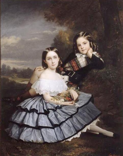 Jean-Bapt. Balthazar Eugène Quesnet was born about 1815. We have been unable to find any biographical information on this very capable artist. This is earher unusual for such an obviouly gifted artist. He appearts to have been a portraitist. And we notice several beautiful canvases. One is 'Les enfants de M. Pierre-Paul Pecquet du Bellet' painted in 1859. The portrait shows a brother and sister The girl wears a low-cut blouse and huge skirt with petticioats showing. In America girls were almost always painted wearing dresses and nor blouses and skirts. The boy who has ringlet curls seems to be wearing a Scottish-themed outfit. Commonly we have information about the artist, but often not the subject of the paonying. In this case we know next to nothing about the artist and a great deal about the father of the children. Pierre-Paul Pecquet du Bellet was born in New Orleans (1816). He was an American attorney, author, and unofficial diplomatic agent of the Confederate States of America during the American Civil War. Pecquet du Bellet as a southerner living in Paris was a strong Confederate supporter. He was fluent in French and assumed on his own the role of an important representative of the Confederacy in France. A major Confederare goal was to obtain rcognition by Britain and France--the two countries with navies powerful enough to challenge the Federal blockase and who neededsouther cotton for their textile mills. So as Pecquert explains it, he was 'taking up the pen, not being able to take up the sword'. He was hoping to obtain popular and political support away from the United States ambassador John Bigelow. He of course failed. France never recognized the Condederacy and actually he was never granted official status by the Condederate Government. After the war, he published a book high critical of the Confederate diplomacy. We vknow nothing anout Pecquet's daughter, but his son Henry like his father wasa invilved in Texas land soeculation as as well as an acrediuted diplomat. He appears to have been active in the Red Cross during World War I. This is American connection mis why this portrait is part of the collection at the musée de la coopération franco-américaine in Blérancourt.