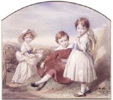 Figure 2.--This 1843 watercolor shows the Swinburn children, Edith, Algernon Charles, and Alice. |