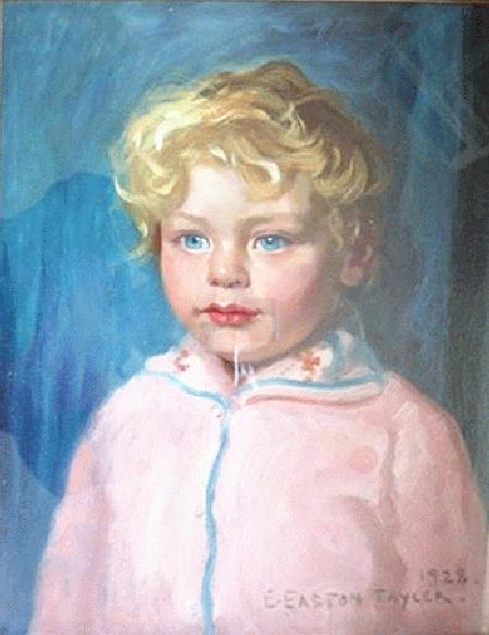 E. Easton Tayler was a London-based portrait painter. He exhibited at the Royal Academy. W know very little about the artist. One portrait painted in 1928 shows a curly haired English boy, at least we think the child is a boy, in a pink play suit. We unfortunately do not know who he is, but he looks to be about 2 years old. Apparently Tayler believed in realistic painting as he painted the little nipper slobbers and all. His hair is has natural curls. While not cut short have not been allowed to grow long. The pink play suit shows the increasingly informal, practical outfits that younger children were wearing. This included children from wealthy families. Only an affluent family could afford to have a portrait made. The pink color suggests that gender color conventions in 1928 were not yet fixed.