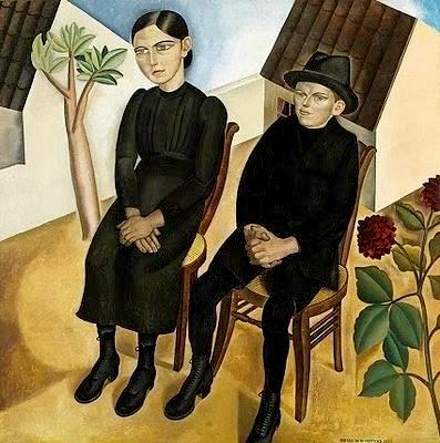 of Ghent. Here is an interesting semi-modernist painting by the well-known Belgian painter Gustave Van de Woestyne (1881-1947). The picture in the attachment is entitled "Gaston and his Sister". They are children of about 11-14 years of age as far as we can tell from their rather stylized dress, which is all in black. The boy wears short trousers with black stockings and the girl is in a black dress. Presumably these are school clothes. From the