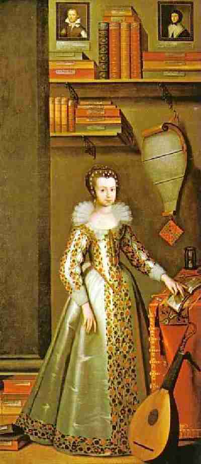 The portrait here provides us a fascinating glimse at an arristocratic English family--the Clifords. Anne Clifford was born at Skipton Castle in 1590. She had two brothers, the boys in the painting here (figure 1). The two boys are Sir Robert Clifford and Francis Lord Clifford. Francis was born at Skipton Castle and died there when he was 5 in 1589. This was a few months before Anne was born. Had he lived he would have been 6 years older than his sister. His tomb is in Skipton Parish Church. Her other brother also died very young but we are not sure when. The adults with the boys are Anne’s father and mother. The artist does not reveal what year the painting of the family was meant to represent, but it would be the 1580s.