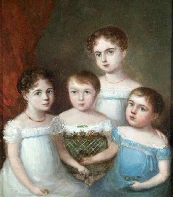Tge portrait is a typical "family snapshot" from an era before photography and shows the children at their best. The Regency of course refers to the regency of the Prince of Wales durung the era in which his father Kibg George III (Mad King George) was incapcitated. The styles popular during this period are also called Empire fashions as the Napoleonic Empire occurred at the same time as the Regency. We have not yet developed a page pn Regency fashions, but it us a oroject we have in mind.