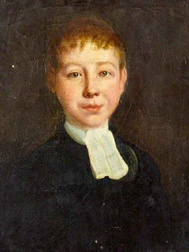 This is a wondeful unsigned oil portait we believe of an English school boy. We believe it was painted inthe mid-19th century, in part because photographic portraits became more common in the late-19th century. The portrait is difficult to date because some school uniforms did not change for centuries and thus did not reflect contemporary style. The boy wears a black outfit with a clerical collar. We believe this is a school uniform. There were a number of schools, the famed hospital schools that had these historic uniforms. I thought, however, they were blue. I'm not sure what school had a black uniform. Hopefully our British readers will know more. A note from April 1920 on the reverse tells that the painting was the property of a Mr. Edward White. We windr if he or a relative might be the boy in the portrait.