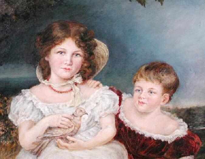 We know virtually nothing about this portrait. The artist is unidentified. The artist seems reasonably proficient, although we would say he did a better job with the girl's face than the boy's face.