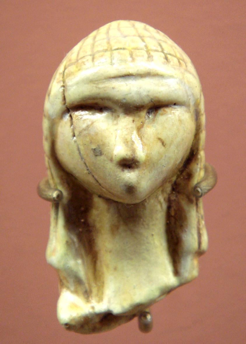 Man has used sculpture as a form of expression since pre-historic times. The prehistoric art known to art historians is primarily parietal art meaning mostlt cave art. This consists primarily of cave painting and cave petroglyphs. Pre-historical sculpture is much less common. There was no monumental sculpture. The first sculptures were small portable item which meant that they were less likely to survive to modern times. But as three dimensional art is more of a challenge than two-dimensional art (drawing). Some of the earliest sculpture finds are not realistic expressions. This of course is important for HBC as our interest is in realism because we are looking for detailed depictions of fashion. Another issue was the human mind. Anatomicall modern man appeared and replaced Neanderthals (50,000-20,000 BP). It is as this time tha the first realistic depiction of humans appeared. Stone Age men was more concerned with animals than people. Only at the end of the Stone Age do we have sculptural depictions. The earliest know portriat is today as the Venus or Dame of Brassempouy. The piece was done in ivory because it is a relatively soft material, easy to carve. Art experts believe it to date to about 25,000 BP (figure 1). It is the first known representation of physical beauty. Note the head scarf, the feearst kjnown repesentation of clothing and weaving, even suggesting a weavuhgbpattern. The French are proud that it was found in France, acountry perhaps more devoted to beauty than any other country. There are no known sculptural depictions of children.
