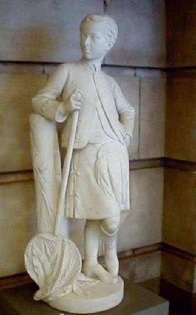 Robert Jackson (1840-78) did a charming sculpture of a Scottish boy that is now in the Victorian and Albert Museum. The boy is wearing highland dress. He is the honourable Alexander Campbell. Alexander was born in 1855. He was was the son of the Earl of Cawdor. It was sculptured in London signed and dated 1872. One question we have is how commonly Scottish boys wore kilts in the 19th century. This work, however, does not help us much. We know that aristocratic and other affluent Scottish boys wore kilts. We are less sure about ordinary Scottish boys.