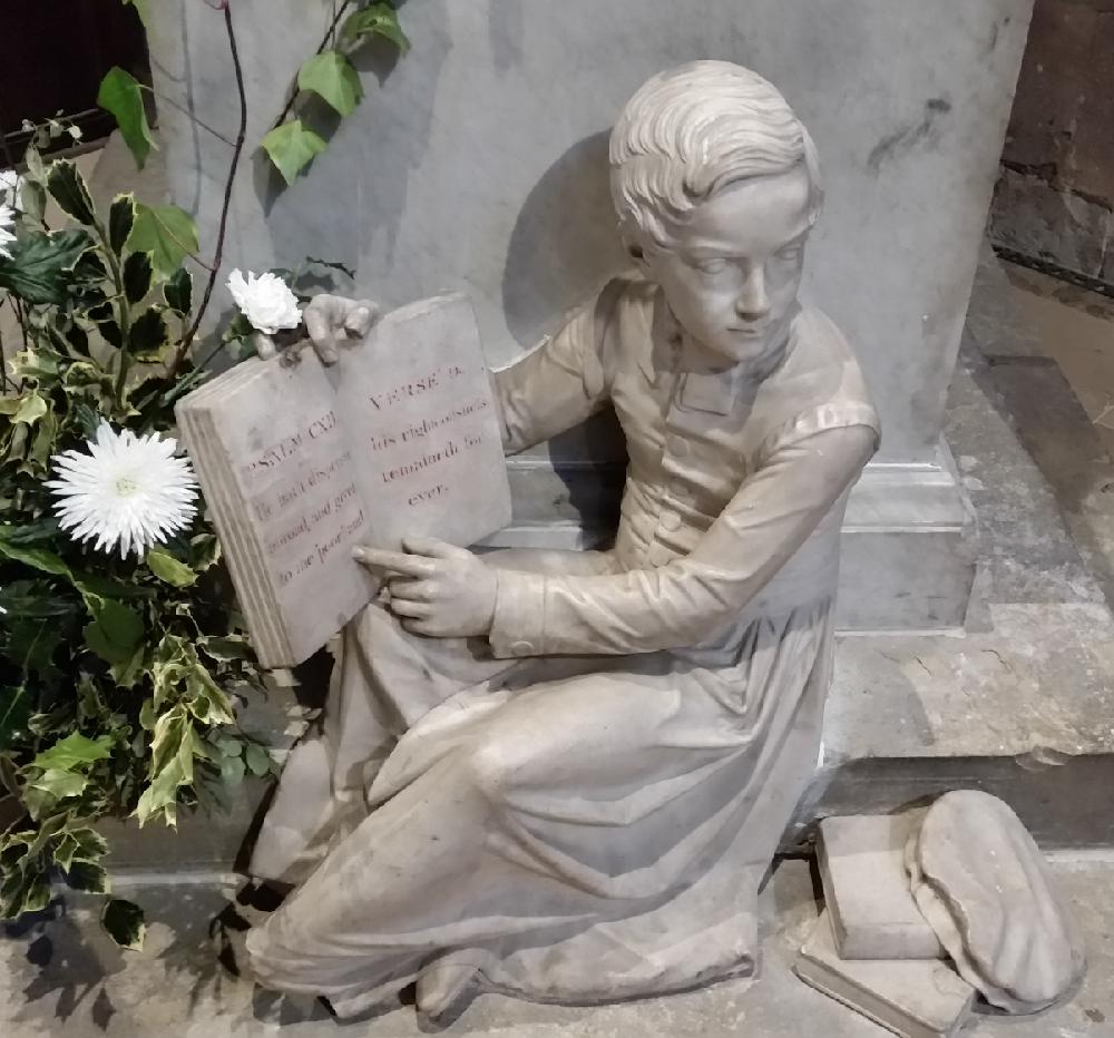 William Theed is also known as William Theed, the younger. He is described as versatile and eclectic in his choice works, including both nythology nd history. He worked in both brone and marble and received many commissions from the Royal Family. His specialty was portraiture. William was born in Trentham, Staffordshire. (1804). His father was sculptor and painter William Theed the elder (1764–1817). We knownothig about his childhood. He was trained as a boy by his father. He worked for several years in the studio of EH Baily the sculptor, perhaps beginning as an aprentce. He was admitted to the Royal Academy Schools (1820). He continued his studies in Rome (1826). There he studied under Danish sculptor Bertel Thorvaldsen and Italian Pietro Tenerani, as well as John Gibson and Richard James Wyatt. He remaine in Rome 20 years, workig in marble creating statues and busts. His patrons included the Duke of Lucca and the Prince and Princess of Capua. He returned to England after obtining a commission from Prince Albert (1844-45). He had John Gibson (a close friend of Theed) to submit designs for statues to be placed in Osborne House. Designs by Theed were accepted. There weremarbles (Narcissus at the Fountain and Psyche Lamenting the Loss of Cupid) and a bronze of Sir Isaac Newton. Theed returned to London (1848). He established a highly successful practice. He ave married Mary and had a son Edward, both listed in the 1881 census. He displayed three pieces at the Great Exhibition (1851). Particularly impressive was a marble of The Prodigal's Return. The work here shows Sir Humprey Chetham with a blue coat scholar at the Chetham Hospital School (figure 1). It was done for Manchester Cathedral (1853). Theed did additional works for Pribe Albert, used in Buckingham Palace. A notable work of the Royal Family was a series of twelve bas-reliefs illustrating scenes from Tudor history. They wre bronzes made for the Prince's chamber in the Palace of Westminster. Of historical interest is doublr portrait sculpture of Queen Victoria and Prince Albert. They are depicted in Anglo-Saxon Dress at the suggestion of Victoria, the Crown Princess of Prussia (the Princess Royal, eldest daugter Victoria and Albert). The sculpture was meant to symbolise the ties between the German and English peoples from Anglo-Saxon times to the marriage of Victoria and Albert. This might have been the course of European histoy as the Princess royal married the liberal Prussian Crown Prince Frederich. Thus was not to be the course of history. Federich dies within months of becoming kaiser. And their son Wilhelm with a very different outlook became kaidser as Wilhelm II.
