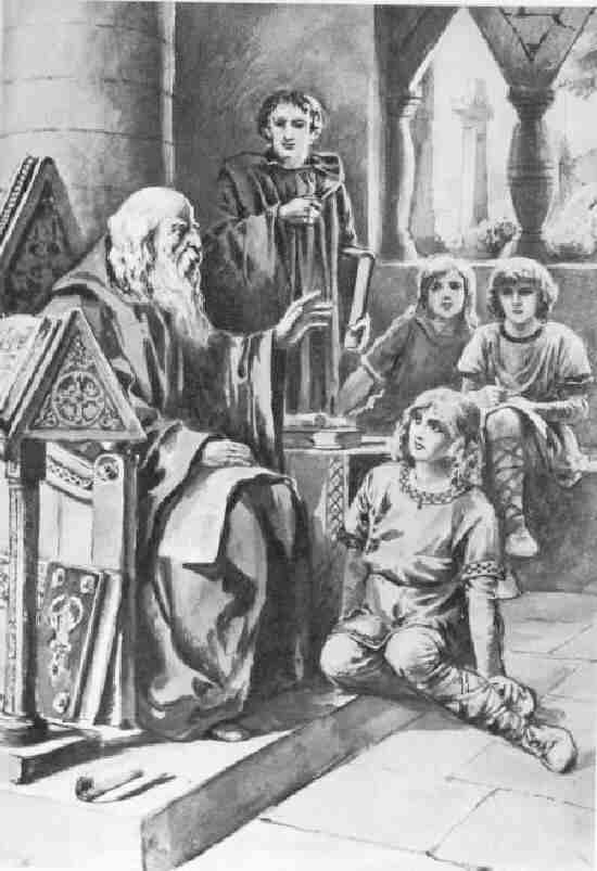 As a boy from probably a poor peasant family, Bede would have received no formal schooling. This changed once he was left at Wearmouth and accepted by the monestary about 680. This was only a few years after the foundation of the monestary. Boys there received extensive schooling, in fact more than most boys of nobel birth. This was primarily because most would have been raised to enter the priesthood. Bede spent his boy hood years at Wearmouth and the newer monestary at Jarrow. Bede while still a boy with about 20 monks went to live at Jarrow. Abbot Ceolfrith oversaw the Jarrow Monestary and would have supervised Bede and his education. Unlike Bede, Biscop, the founder of the monastery traveled a great deal and spent much time in Rome and other centers of civilization. He asembled an extensive library for the monasteries. It was of course a wonderful resource for the young Bede.