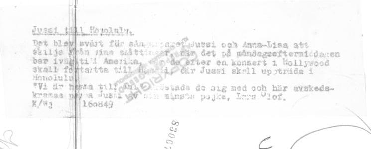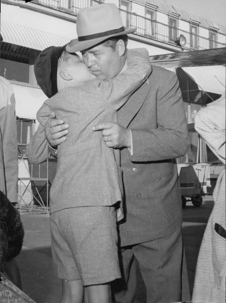 Johan Jonatan 'Jussi' Björling was born in the provincial town of Borlänge (1911). This was in Dalarna province, some 220 km NW of Stockholm. Jussi's father, David Björling was a tenor and singing teacher and music was the center of his family life. He trained the voices of his children at a very early age. Jussi was child protegy. The three oldest children (Olle, Jussi and Gösta) made their first public performance in a church at the age of 4 years (1915). They sang as the Björling Male Quartet often selecting Swedish folk songs. The boys wore what look like Swedish folk costumes. After World War I. David took his boys on tour (1919-20). They toured throughout Sweden and eventually reached the United States. They made six recordings (1920). This began Jussi's relationship with America. Unlike many child prodigies, Björling had an enormously sucessful adult career -- some times referred to as the 'Swedish Caruso'. Jussi was a Swedish tenor, the greatest Swedish singer of the 20th century. He was also one the leading operatic singers of the 20th century, popular throughout Europe and with an especially important American following. A reader tells us, "Enjoyed the posting on Jussi Bjoring. I am an opera fan and Bjoring was one of the greatest singers of the 20th century. His high Cs were second to none. I have a live recoding of his Romeo from the Met in 1949 that is absolutely incredible." [Libby] Björling delivered many performances at important European opera houses, but was most associated with the Metropolitan Opera in New York City. He married in 1935 and had three children in addition to an earlier son. He oldest son Rolf also was an accomplished singer. His wife describes him as a loving husband and father, but family life was unfortunately marred by alcoholism. This was also a factor in his tragically early death.