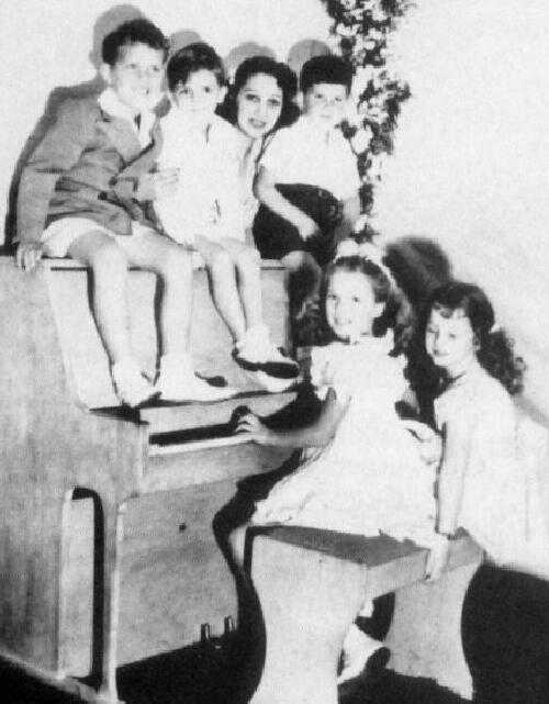 ![]() Figure 1.--Here are the kids of several show-biz stars. Tad Devine is sitting on the pianomat the left, next is Ronny Burns (George and Gracie's boy), Mrs. Jack Benny, and Tookie Harris (Phil Harris' son). The two girls are Sandy Burns and Joan Benny. |