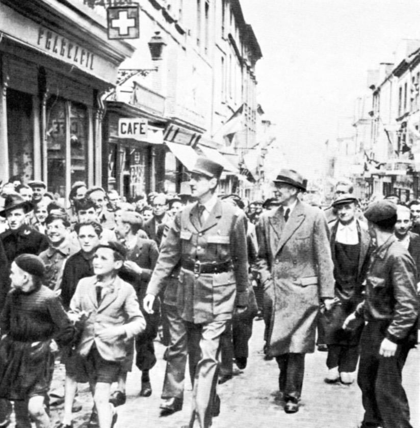 De Gualle refused to surrender. He rejected the armistace as well as the Pétain Vichy Goverment. De Gualle was unknown to the French people, but organized the Free French resistance to the Germans and the Vichy French Government which was colaborating with the Germans. He formed the French National Committee in England. The Committe was to become the Free French movemnent. He became convinced that his destiny and that of France were intertwined. [Haskew] He made inspired radio broadcasts to occupied France. It was these speeches that made him a symbol of French resistance. A young Resistance fighter recalls, "