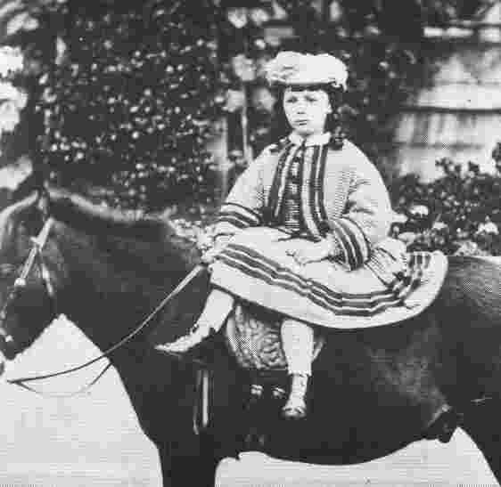 I believe the Honorable George Lambton was a grandson of John George Lambton. Available photographic images from the 1860s show that George as a small boy was dressed almost identically as his older sister, Lady Beatrix. She lloks to be about 10 years of age. He looks to be about 5 years old. This was common at the time for boys until they were about 5vyears of age. Images show George and Beatrix wearing identical riding dresses of check cloth trimmed with braid. The bodices fasten with buttons down the front, the sleeves are close-fitting to the wrist and the full skirts are pleated. They have matching jackets with small white collars. They wear short white socks and boots. George's boots are fastened with laces and Beatrix's with buttons. The onlu sgnifican differences are the hats (hers has plumes), the hair (she has ringlers), and the fact ghat she sits side saddle while her brother sits manly astride the horse, despite his dress.