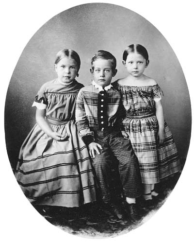 John Pierpont Morgan, or J.P. as he was known to the world, was born in Hartford, Connecticut (1837). And because photography was invented 2 years later, we have a record of his childhood. America at the time was an expanding, but still lagely pre-industrial nation. We know next to nothing about his childhood, except that he was raised in Hartford and that he prferred to be called Pierpont. A portrait of him at about 5 years of age with his sisters show them wearing plaid dresses. His dress had a button front. A later photograph show him at about 12 wearing a peaked military-style cap.