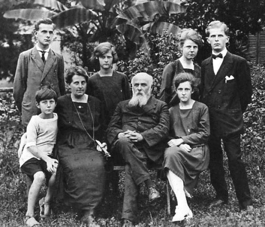 Camillo Olivetti married Luisa Revel. She was the daughter of the Pastor of the Reformed Church of Ivrea. In later years of his life, Camillo joined the Unitarian Church. They had six children (figure 1). In the back row of the portrait here we can see Massimo, Laura, Elena and Adriano. Adriano studied in the United States. In the front row are Dino and Silvia. Dino, the younger boy was born in 1912. He is weating an open-necked shirt with short trousers and open-toe sandals. This is an example of summer clothing of a wealthy boy. At the time open toe sandals are not so common as they became later. Working class children wore shoes or clogs or they went barefoot.