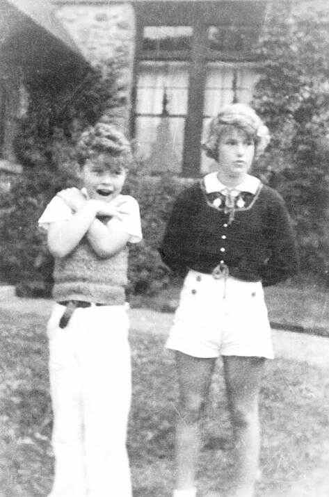 The Blandings appearently took a vacation to Europe in 1936. This was something only rich families could in the 1930s. At the time people traveled by ocean liners. We are not sure just where they went, but we see them at what looks like a lodge. William is wearing long pants. Margaret is wearing short pants, which I don't think was all that common for girls, except in situations like summer camp.