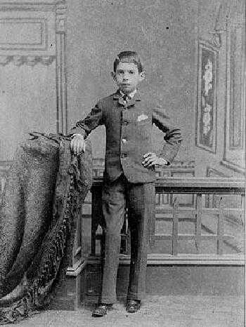 This is a cabinet card photo of a boy identified on the back as, “Coley Collins". The photo was taken on July 14, 1886 by Mowry in Elmira, New York. American boys by the 1880s were increasingly wearing kneepants, but many boys like Colley wore long trousers as well. Note the very high lapels on Colley's jacket. Also note how short the jacket is cut. Many boys wore bows with their suits. Colley seems to wear rather adult-looking neckwear.