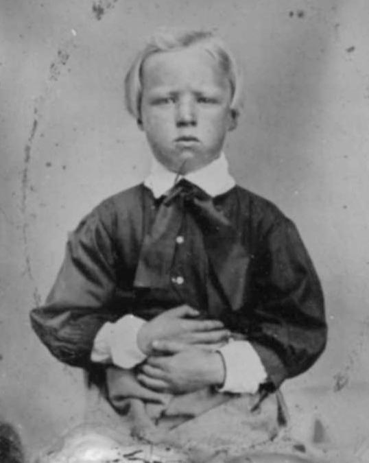A reader writes, "The boy is indeed holding his hands in a strange position. It is as if there is something he is concealing. It also reminds me of how children hold themselves when they have tummy pain. A strange photograph indeed."