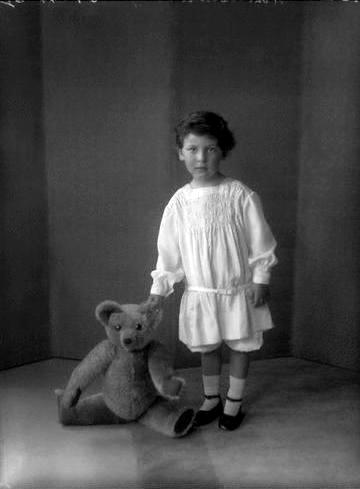Figure 1.-- Adrian Gerald Foley was borm in 1923. We have liitle information on his childhood. We do note a charming portrait in a romper-like tunic suit in 1926. Adrian was 3 years-old at the time. He holds a great teddy by the ear. We do not know if that was actually his bear or a studio prop. Adrian and his parents were photographed at an extensive shoot with Bassano Ltd, Royal Photographers, a firm founded by Alexander Bassano. Source: National Portrait Gallery, London.