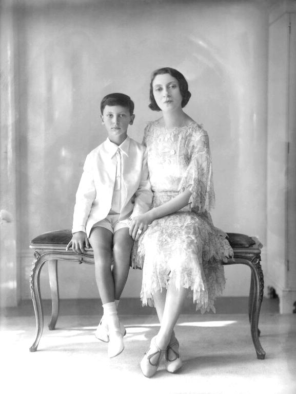 Figure 2.-- Here we see Adrian with his mother a few years later. e think in 1930. He wears a smart white junior short pants Eton suit,. It would have been a summer suit. Norice the white socks and whire strap shoes. The photograph was taken in July 1930. Source: National Portrait Gallery, London.
