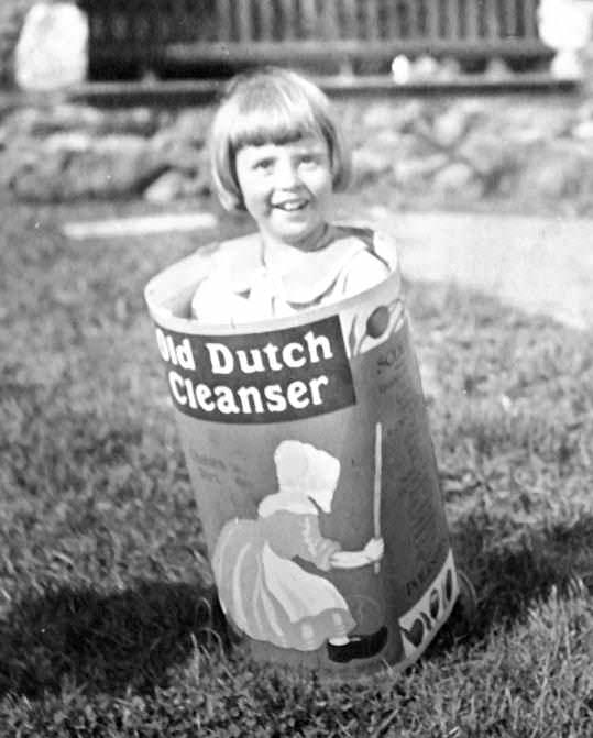 This family clearly liked to have a good time. Here Phyllis was playing in the yard of their home in an undated photograph. She is presumably wearing a dress, but all you can see is the Peter Pan collar. Her hair is sone in bangs. She looks to be about 9 years old which would mean that this photohraph would have been taken about 1908. She has found an large poster advertisment for Old Dutch Clanser which she has fashioned into a can. It look like her father surprised her with the camera.