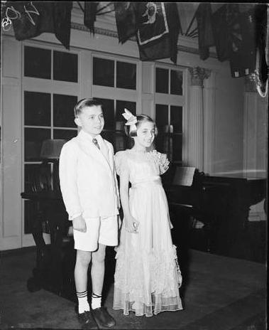 Jesse and Mary Mary Louise Hook participated in the Congressional children broadcast. This was a NBC radio sponsored event in which the children of Congressmen ans Senators apparenty got radio time (April 16, 1938). . This may have been a one time event. We have few details at this time. We are not entirely sure what they did with their time. We see some children playing musical instruments. Another child sang while a lady played the piano. Most of the children are just standing or sitting and talking into the michraphone. Here we have Jessie wearing a white short pants suit, reflecting the fact that it was spring time in Washington. Mary Louise weas a formal long dress. They look to be aboaut 8-10 years old. Given that their parents are in Congress, we would assume that they came from a really affluent family. Notice the white ankle socks with bands. White socks became standard casual/athletic wear in America, but this was not yet the case in the 1930s. We do not notice them very commonly in the 1930s. We note another NBC program with children from the embassies, including the German Embassy.