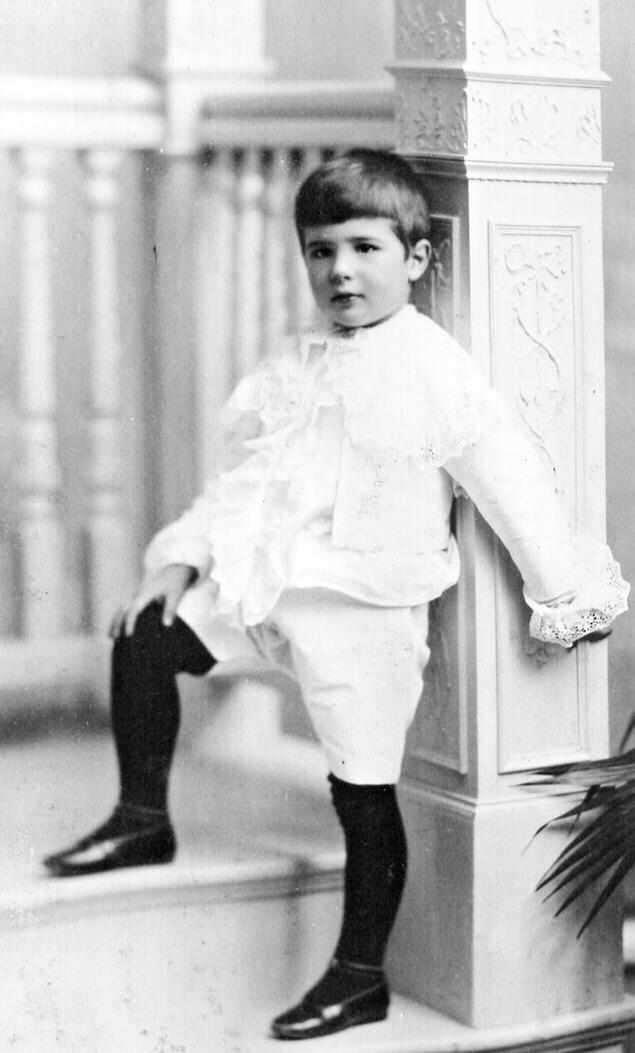 Also, even though the boy was photographed in mid-winter (very cold in Montreal), he wears white knee pants which do not appear to have ornamental buttons at the hem. He wears strap shoes that fasten around the ankle.