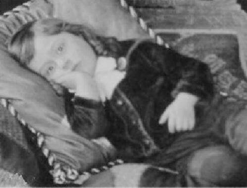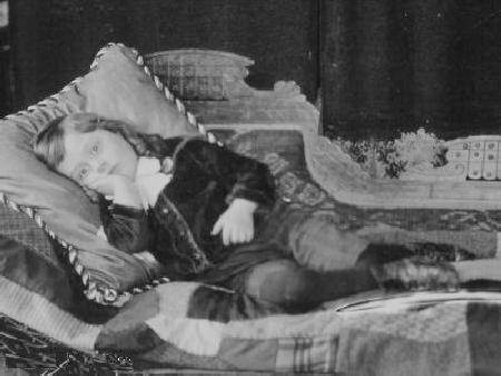 Here we have a rather unusual cabinet photo of a little boy laying on a fancy sofa. Almost always boys were either standing up or sitting down for photographs. The photograph is undated, but was probably taken in the early 1900s. He has long ringlet curls and wears a velvet jacket with piping. I'm not sure if he is wearing knickers or kneepants. The portrait is enscribed H.R. Montgomery on the back. The boys is Lyman Montgomery. We do not know where he lived in America.