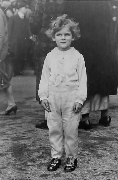 Here we have a page for a society wedding. Lady Joan Wentworth-Fitzwilliam married Capt. G. P. Philipps, at the Guards' Chapel, Wellington Barracks. W are not sure about the date. We would say the late 1920s or early 30s. There were a record number of bridal attendants--seventeen. The bride is the daughter of the Earl and Countess Fitzwilliam. The bridegroom is the only son of Maj. Grismond Philipps and Mrs. Philipps, of Cwmgwili, Carmarthenshire. The page here is Derek North. I am not sure how he was related to the bridal couple. He wears a fancy blouse with button-on long pants, probably done in satin.