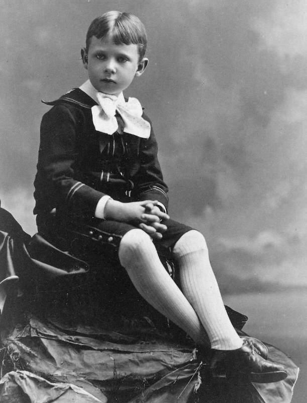 This cabinet card portrait shows Herman Newcomb who looks to be about 6 years old (figure 1). He is wearing a period sailor suit. There is a V collar, but not a pronounced one, covered by a good sized bow. There is also a white collar. The bow suggests the early-80s to us rather than the late-70s. There are stripes everywhere, even on the knee pants. The knee pants are shorter than we commonly see in the 70s, another indicator of the 1880s. Herman also has white long stockings and low-cut oxford shoes. High-top shoes were more common. Notice his cap at left. Boys sailor suits were still quite varied and not yet closely following actual uniform styles like the ones we see in the 1890s. The portrait is undated, but the suit styling and the mount style suggests tht it was takem in the late-1870s or early 80s. The boy's nanme is written on the back. Notice his center part. Center parts are usually a reliable indicator that the child is a girl, but like we see here, boys also could have center parts. The portrait was found in a Connecticut family album. The portrait, however, was taken by Marc & Schlum in New York City--Sarasota Soprings Branch.
