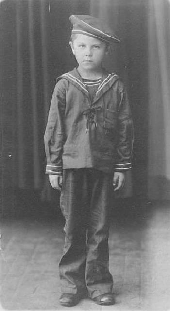 Here we have a photo postcard of a boy in a sailor suit and matching cap. Presumably they were blue.These sailor suits were very popular, but the cap style is not one of the more ommon styles worn with them. Many boys this afe in the 1920s wore shortpants or knickers, but sailor suits were dne with both short pants and long pants. The boy's outfit looks to us like a modestly priced portrait as well as a moderately priced sailor suit. It was taken at the M. Zalkoff Photo Studio / Division St Chicago. On the back seems to be written, "Woycik boys?" We think that may be the boy's family name. Presumably his parents were Polish immigrants. Chicago of course had a substantial Polish community. The AZO stamp box (to arrows up and two down) tells us that the portrait was probably taken during the 1920s.