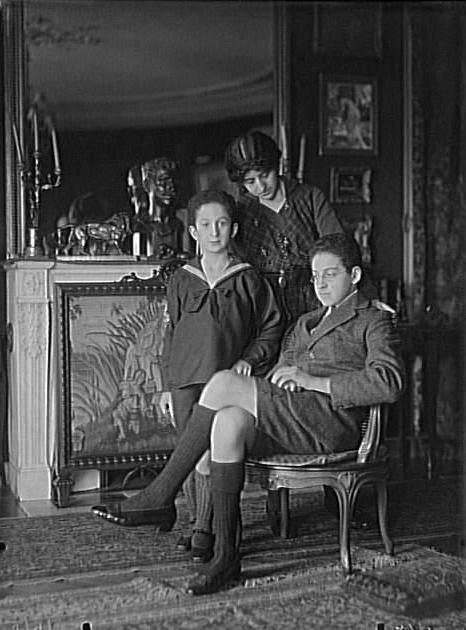 three children: Thérèse, Jean, and Michel. We note a photograph of his family in the parlor of their well-appointed home during the early-1900s. It shows his two sons. We at first thought that the third person was their mother, but now think it is the daughter Thérèse. The elder boy is wearing what a French site call 'culottes Anglais' (English short trousers). The younger boy wears a 'costume marin' (sailor suit). We are not sure when the portrait was taken, but would guess the early-1920s because the older boy is wearing short pants rather than knee pants. Pontremoli worked with Théodore Reinach on a project to build an ancient Greek villa--Villa Kerylos (1902-08), He was elected to the “Académie des Beaux Arts” (1922). He taught architecture at the École nationale supérieure des Beaux-Arts and was appointed a director (1932). He also designed synagogues. One of his best known buildings is the Institute for Human Paleontology in Paris for Albert I, Prince of Monaco. We are not sure what happened to him and his family during the German World War II occupation (1940-44).