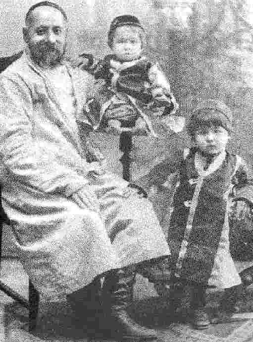One of Tajikistan's most important writers is Aini Sadriddin (1878-1954). He got into trouble for speaking Tajik. The Emir had him whipped within an inch of his life. Then he was thrown into prison. The Soviets were making Tajikistan into a Socialist state (about 1924). They overthrew the Emir of Bakhara. Aini was released from prison and from then on supported Soviet Ideaology and wrote books about the despotic times of the reign of the Emirs. We do not have chilhood portraits of Sdriddin, but we have some of his family. Here is a photograph of Aini and his children. It was taken 5 March 1929. Soviet Tajikistan was then 5 years old. The new city was Dushanbe and a building programme was in full development. Communist German architecs had designed many impotant government buildings which were then being built.