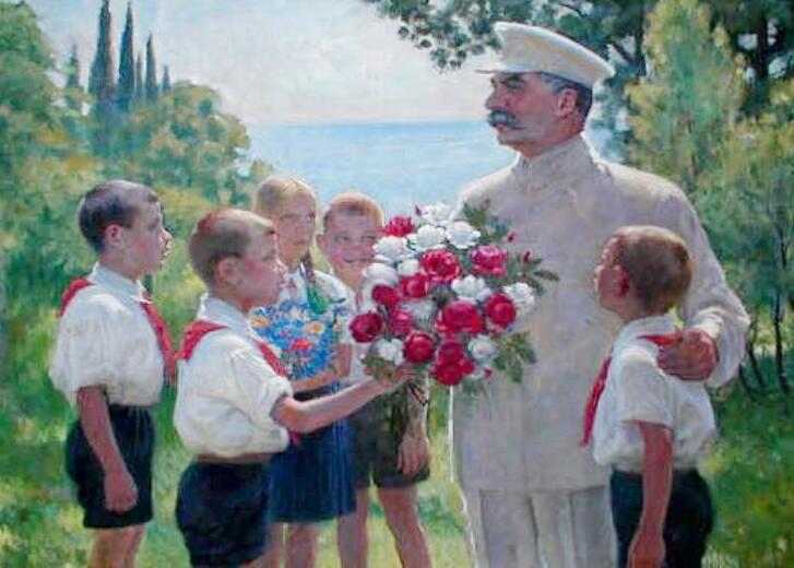 Another photograph shows Stalin with a group of school boys. The message this picture gives is of a father figure encouraging his children to work hard at their studies and to go on to university.