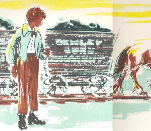 He often watched the horses pulling the trucks as they passed by. The illustrator, Robert Hodgson, depicts this scene in the Nock book. His sketch saws a young boy dressed in long trousers and wearing a shirt. He seems to have a tie on. The shirt is buttoned. George