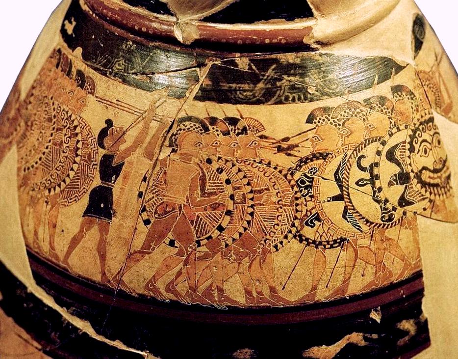 Second there was the nature of the phalanx and hoplite warfare. It was a uniquely democratic type of warfare. There was nothing of the arustocratic warfare Homer writes about. There was no figure like Achilles engaged in dearing do. Rather there was a solid phalanx of shields and spears. Each man in the phalanx had to rely on the two men on either side of him for protection. His life was in the hands of the others -- essentially the very definition of democract. No one stood out. Every member of the phalanx was of equal importance. In no other abcient society was an individual of common social status so important.