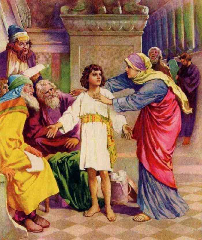 We have very limited information on the clothing of the ancient Hebrews. As a result of Mosaic Law, there is no art from the ancient Hebrews depicting their dress and hair styles. There are a few rare depictions of Hebres by the people who conquered them. We note an Assyrian scuplture from the 8th century. This probably is a reasonable depiction for much of the millenium. Clothing changed very little and only glacially at the time. Another source of information was the Bible. There are numerous references to clothing in the Bible which generally mention garments, but few if any detailed descrition or mention of color. We know that people wore tunic and cloak (Mathew 5:40). Probably at home people wore only the tunic. When they went out put on the belt and the sandals and, if necessary, the cloak: "Put on your belt and your sandals." He did so. Then he said to him: "Put on your cloak and follow me." (Acts 12:8). It is very probably that usually children didn't wear sandals. One popular theme that Western artists have pursued through the centuries has been biblical depictions. Magnificent and dramatic works of art, while not always realistic and are imaginary, have been created by renowned masters and are national treasures in their country of origin. Medieval artists often garbed Biblical figures in contemprary clothes. In modern times, wonderfully illustrated books depicting key moments from the biblical era for children are still popular as ever.