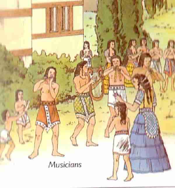 Both father and son appear to have dressed similarly. Men wore shorter skirts than women. The most prevalent length was thigh-length skirts, but there were various lengths including some down to the ankles. They looked to be wrap around garments with a tassel in the front or back. Around the edges of this skirts there may have been embroidered designs. It seems to be wrapped around the waist and held in place by some type of fastening. It does not look to be held in place by being tucked in. The women wore more interesting and more elaborate clothes than men. Men and boys do not appear to have worn footwear. This probably would have been especially rare with boys. shoes. Womens skirts were even more varied. Even less information is available on what Minoan boys wore. Minoan boys until puberty probably did not wear a lot of clothes as it was a warm climate. As was true in the later Greek civilization, they engaged in sports without clothes which can be seen here in Minoan art. The boxers on the previous page are an example. Presumably boys wore scaled-down clothes similar to their fathers. At this time we know of no destinctive clothing wore by Minoan boys.