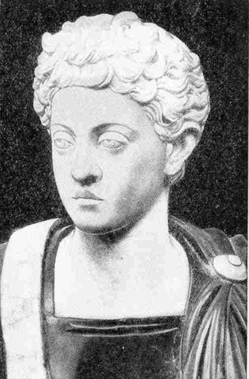 Marcus Aurelius decided to revert to previous practice and designates his son Commodus as his successor. The bust here shows Commodus as a boy of about 12-13 years of age Figure 1). who rules as an especially brutal tyrant. He was profligate and licentious as well as deeply suspious of those arround him. Historians describe him as one of the most muderous tyrants in history. Commodus is killed in a conspiracy (192 AD). Film buffs will of course recognize Commodus as the villan in the popular film "The Gladiator".
