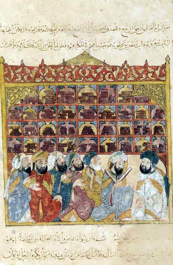 While the great age of Islamic expansion ended wih the Umayyads. It was the culture of Abbasid Caliphate that led it to be known as the Golden Age of Islam--the pinnacle of Arab culture. The Caliphate became a bustling center of world commerce and culture at a time that the civilization of the West was mired in the Dark Ages. In contrast there was an outpouring of learning and culture in the Islamic world. And this was not just religious learning. Baghdad in particular became a renowned center for learning, including science, mathematics, philosophy and literature--especially poetry. Matamatical achivements included the invention of algebra and advancs in geometry and trignometry. Medical advamces were paricularly impressive. The Abbasids invented the teaching hospital, The me medical encyclopedia preapared by Ababasis doctors was for 600 years used in Europe and better than anything the Europeans themselves produced. Scientific achievements were made in astronomy, biology, chemistry, and physics. The Abbasids came very close to inventing the scientific method. There were also imprtant geographical works. Al-Idrisi compiled a world atlas with the most accurate maps of the day (10th century). [Al-Idrisi] Several tavelers accounts provide invaluable accounts. We thus have views of the Mediteranean to Cetral Asia. The accounts Ibn Battuta are especiall important as his travels took him from Morocco into the Middle East in the wake of the Mongol invasion (14th cenury). An important part of Arab learming was the collction and training of the ancient texts a well as the acquisition of contemprary works. Renounded universities, libraries, and public baths were built at Baghdad. The House of Wisdom/Books became the great repository for texts from the known world, the greatest collection of the day. The Abbasid philosophers, scientists, mathamaticians, inventors, and poets created a body of learning and inspiration that pved the way for the European Renaissance.