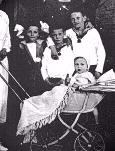German boys' fashions changed significantly as was the case in other European countries. Sailor suits continued to be widely worn, but not as commonly in the early 20th century. The rather formal styles before World War I gave way to more casual styles. Sailor caps were still common in the 1920s. We also note another military-syle cap that looks like a peaked army cap. Both styles disappeared very rapidly in the 1930s after the NAZIs seized power. Shirts were worn with wide open collars, a style very popular in the 1920s and 30s. Boys attire changed from kneepants to short pants in the 1920s. Boys especially in the 1920s commonly wore long over-the-knee stockings, both for warmth and formal occassions. A good view of formal boys attire can be seen by looking at the outfits Catholic boys wore for their First Communion. Kneesocks were, however, becoming more common. The shorts tended to be realatevly long in the 1920s and even into the early 30s when the Weimar Republic was seized by the NAZIs. At the same time kneesocks conntinued to be very common. Many boys wore sandals. In some case single bar strap shoes, but English style "T"-strap sandals were also common. Many German boy still had very short even cropped hair cuts in the 1920s.