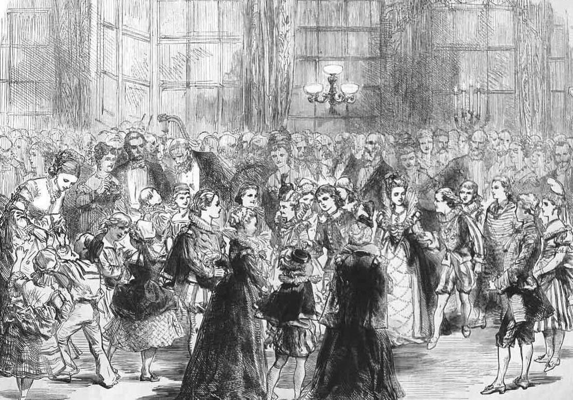 We note costume parties in England. We think that they were more for adults thasn children, but we do not have a lot of information on this. We have found a few children's balls that seem to be high-society events. We were surprised on seeing an important British publication giving so much attention to them. We would understnd if they were mjor high-sdociety events, but it is somewhat surprisding that they also gve such attntion to children's event. Of course these were the children of high-society families. As far as we know, these society balls were rare exceptions. At the time, costume parties were primarily adult events. Haloweem when American childten dressed up in costumes was not celebrated in England at the time and would not become of any importance until the late-20th century.