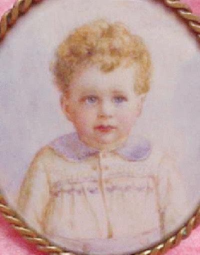 This Australian minature painting is unidentified. An E-bay seller describes this as a 19th century image. The colored Peter Pan collar and smocking suggests to HBC that this may be an early 20th century blouse. The HBC seller assures us that it is 19th century. She writes, "Well I guess the reason I believe that it is 19th century is style, material, frame and the estate it came from. I should have included that the nails that were left are a dead give away".