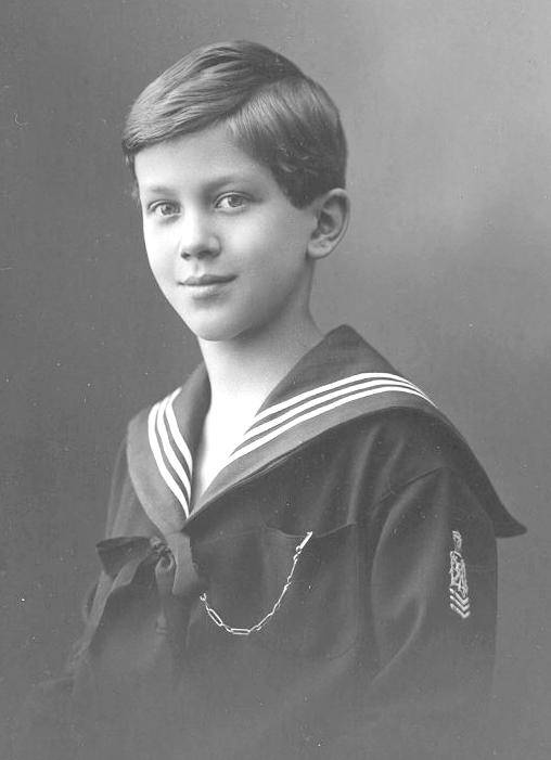 This is the only imagethat is definitively dated. Jean was 8 year old and he was phoyographed in 1921. Jean wears a very traditional short pants sailor suit with three-quarter length dark socks and high-top shoes.
