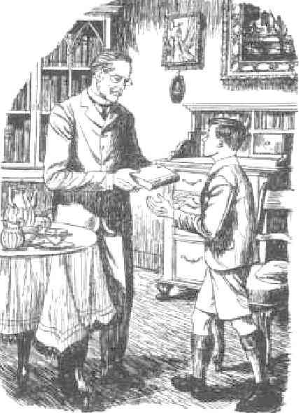 Figure 1.--Here Jan is receiving a book. The illustrator shows the short pants suit he wore as a boy. |