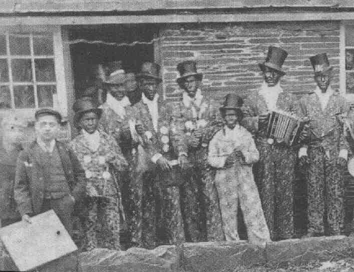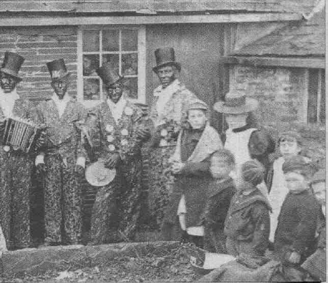 There are also a range of other events celebrated locally. One of these is Darkie Day celebrated on Boxing Day and New Year's Day each year in the fishing port of Padstow in Cornwall. The origins go back to travelling "mummers" in medieval times who used to blacken their faces and sing for the price of a meal - this was known as "guising". The whole thing became a formalised celebration in the 19th century when the minstrels musical movement arrived from America. The whole purpose of the ceremony today is to raise money for charity. A British reader writes, "Where did you get the expression DARKIE DAY? I have been aware of mummers on Boxing Day since I was very small (we had them in the parish where I grew up, though I never saw them). I have NEVER heard this expression before today though!" I believe it is the term used in the Cornish port. I don't know if it is used any where else. It appears to be a tradition that continues today. There is a 2005 image that appeared in the newspapers.