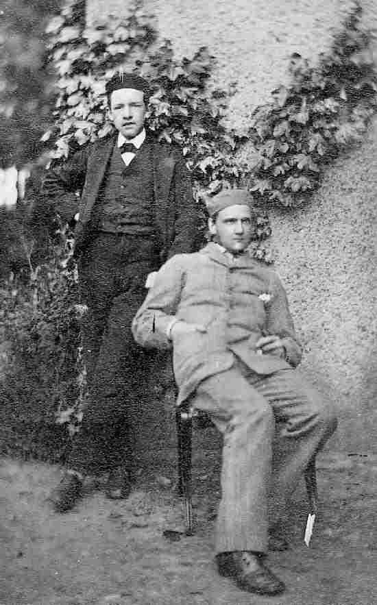 Figure 1.--Here we see two boys who we believe to be schoo friends of William Robinson. The photograph was taken in 1878 outside Chart Sutton Vicarage. Kite is yet another person wearing the unusual smoking hat style of cap. Unfortunately, we do not know what school the boys attended. The age of the boys suggest it was a public school. |