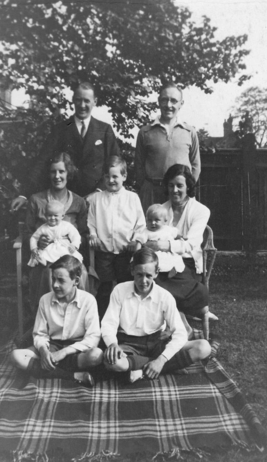 Here we have an unidentified English family in their back garden,during the summer. They are obviously a middle-class family. We see a small, but tidy back garden (the Britih term for back yard). Mother has haulded out a blanket for the boys to sit on. That is something that would be unlikely in America on a well-manacured lawn. This looks to be grandfather's home with two adult daughters, thus an extended family. In fact both men might be grandfathers, here we can only guess. Notice one of the men wears a tie and suit for a backyard event. The two boys are dressed idntically in long-sleeve white shirts, short pants, and long school socks. A concession to summer seems to be white, perhaps canvas shoes (plimsols). They look to be bout 11-13 years old. We would guess they went to the same private school, presumavly a prep school. The snapshot is undated, but looks like the late-1920s or early-30s to us. The boys don't look very happy to us which is a little unusual in family snapshots. Beyond the social and family insights here, we have a very important historical strategic insight. English families, both working-class and middle-class families tended to live in single-family dwealings. This meant cities which spread out horizontally with relatively low population densities. This contrasted with Germany where multi-story apartment buildings were much more common meaning cities with far greater population density. This would be an important factor in the coming world war. Families like this built Anderson bombshelters in their back gardens
