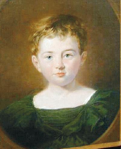 The neckline along with the bodice are integral to the overall dress design. They are the two most important elements determining the look of any dress. A fashionable dress is designed for women. And in a woman's dress a neckline is cosen to emphasizes or deempohasize the the bosom. Of course this has nothing to do with a boy. But boys did at times wear fashionsable dresses conforming with the fashions of the day. Open necks were very common in the early-19th century, but closed-necks, often with collars were more common in the late-19th century. Open neck collars were done to various depths. and shapes. We see some dresses done with low necklines like fashionable ladt might wear. We see rounded, "V", square, and rectangular and countless refimenents of those basic shapes. Higher cut nckline around the neck were more common. There are three basic styles: on the shoulders, off the shoulders, sand strapless. Children open-neck dresses were normally done as on the shoulder dresses. The neckline was decorated in various ways with lace or other decoration. Closed-neck collars were also done in awide range of designs and with various decorations. Closed neck dresses along with high necklines were common for children. Some had collars that might be buttoned.